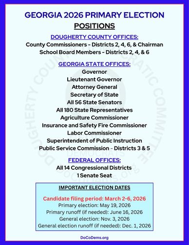 Go beyond promises to build a movement that delivers for all Georgians, from rural areas to big cities. Your Dougherty County Democratic Committee is making a difference. Join us!
