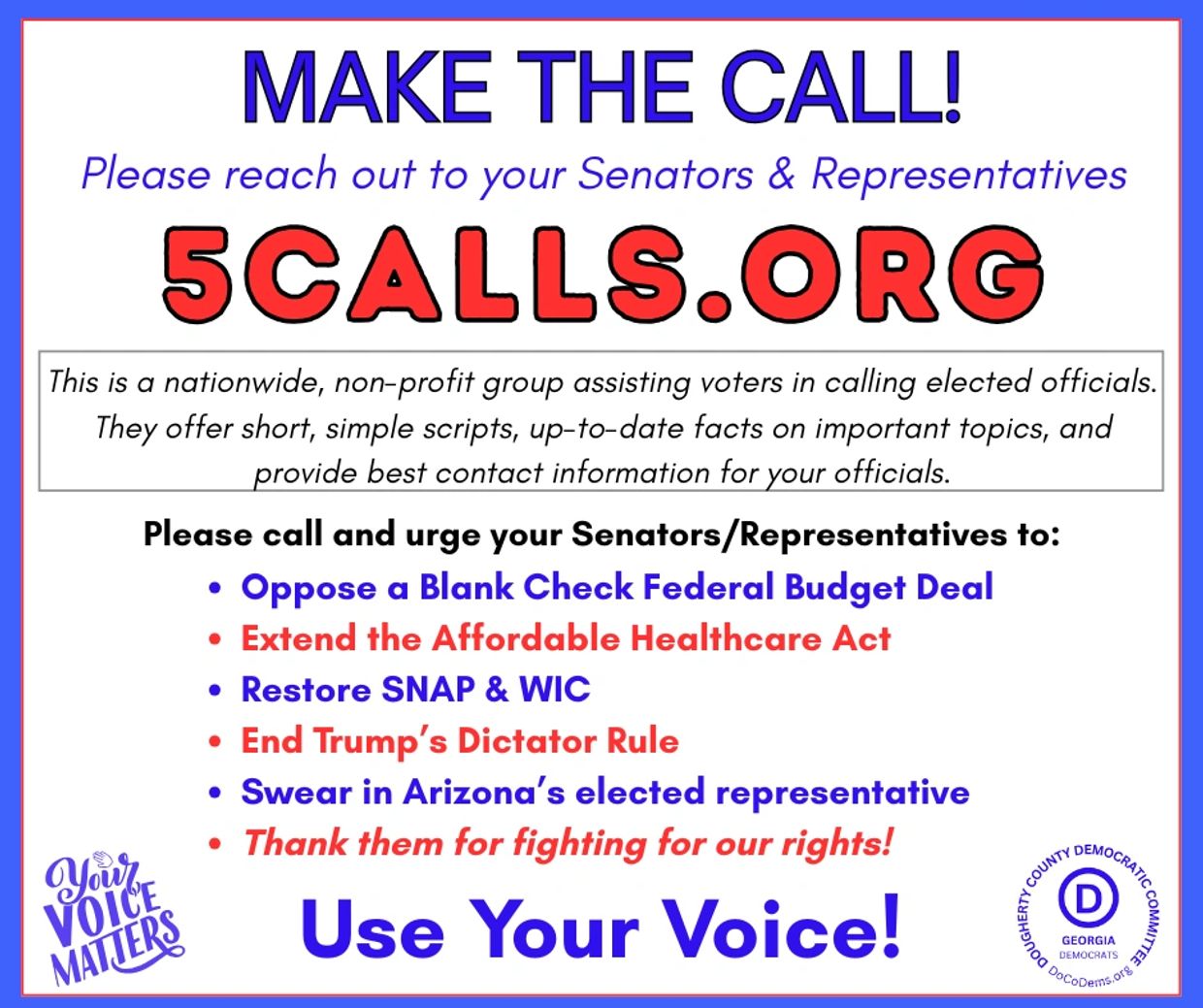 5 Calls makes it easy for you to reach your members of Congress and make your voice heard. We research issues, write scripts that clearly articulate a progressive position, figure out the most influential decision-makers, and collect phone numbers for their offices.